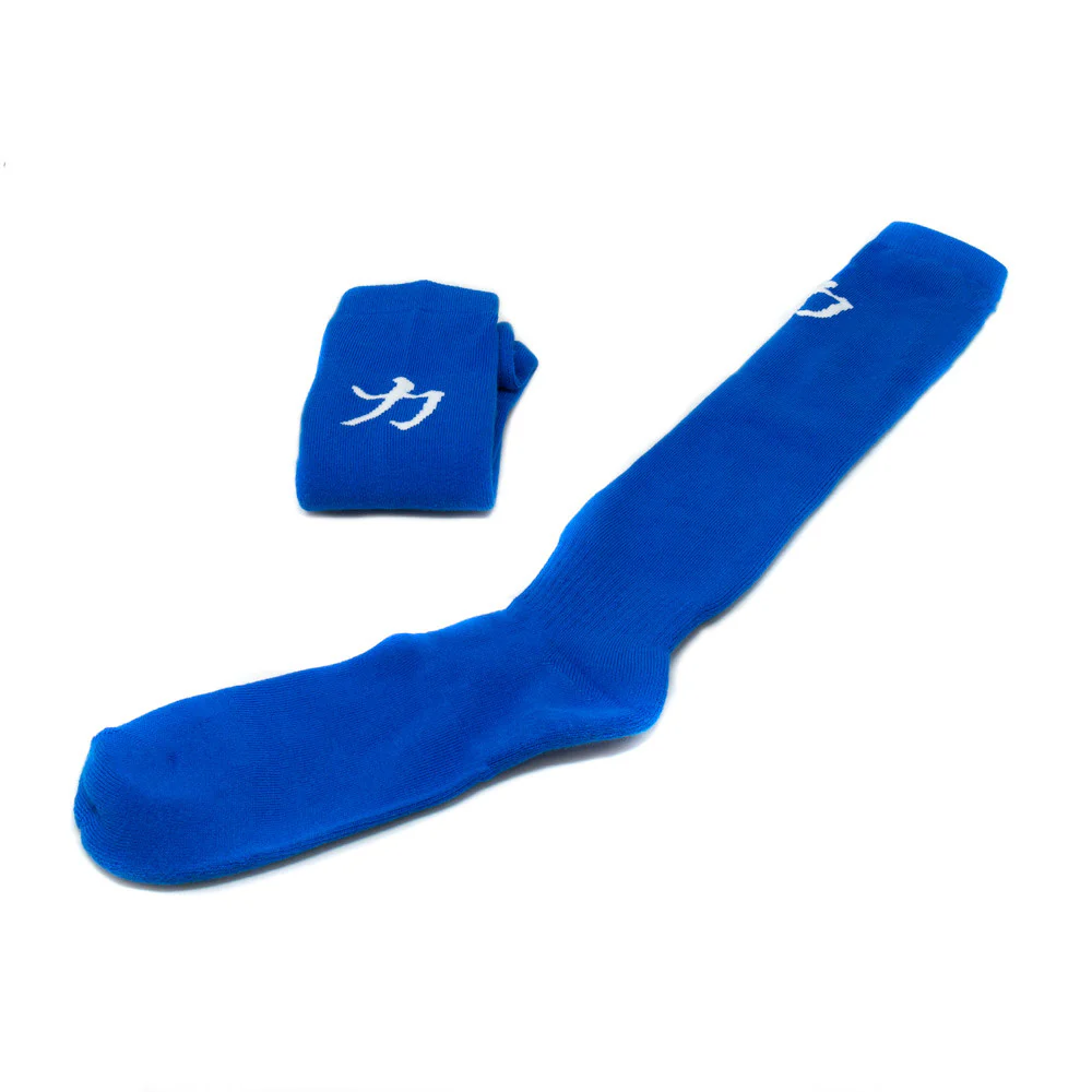 Blue knee length Strength Shop Deadlift / Weightlifting Socks, 100% Cotton.